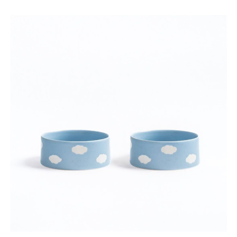 Komplet ceramicznych misek dla psów w chmurki (niebieskie) – 2 sztuki