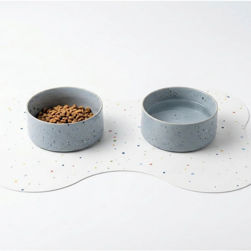 Dzięki swojej formie i materiałowi mata stabilnie trzyma miski, chroniąc podłogę przed wodą, jedzeniem i zabrudzeniami.