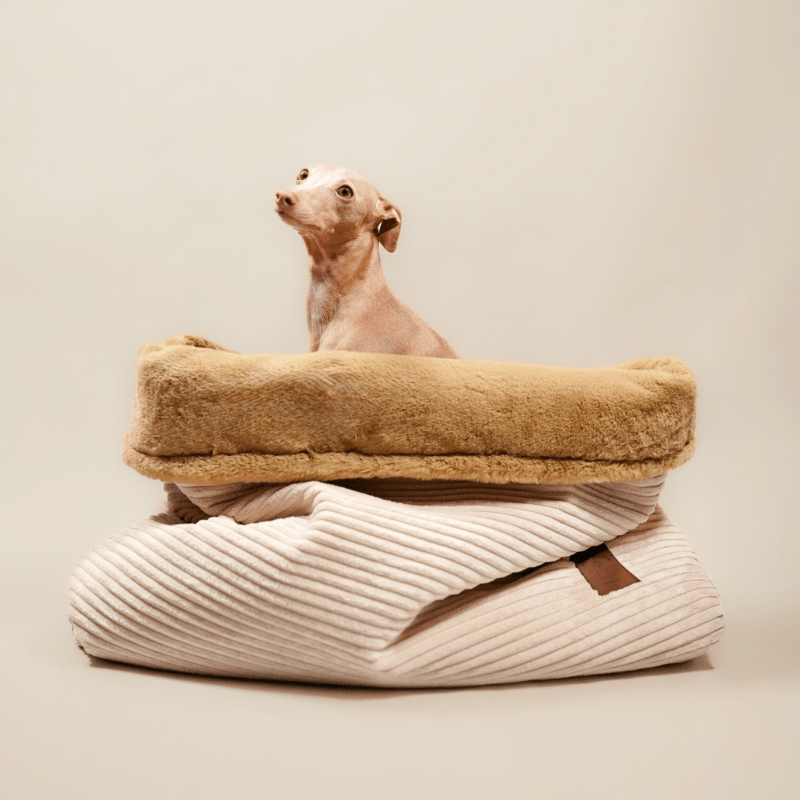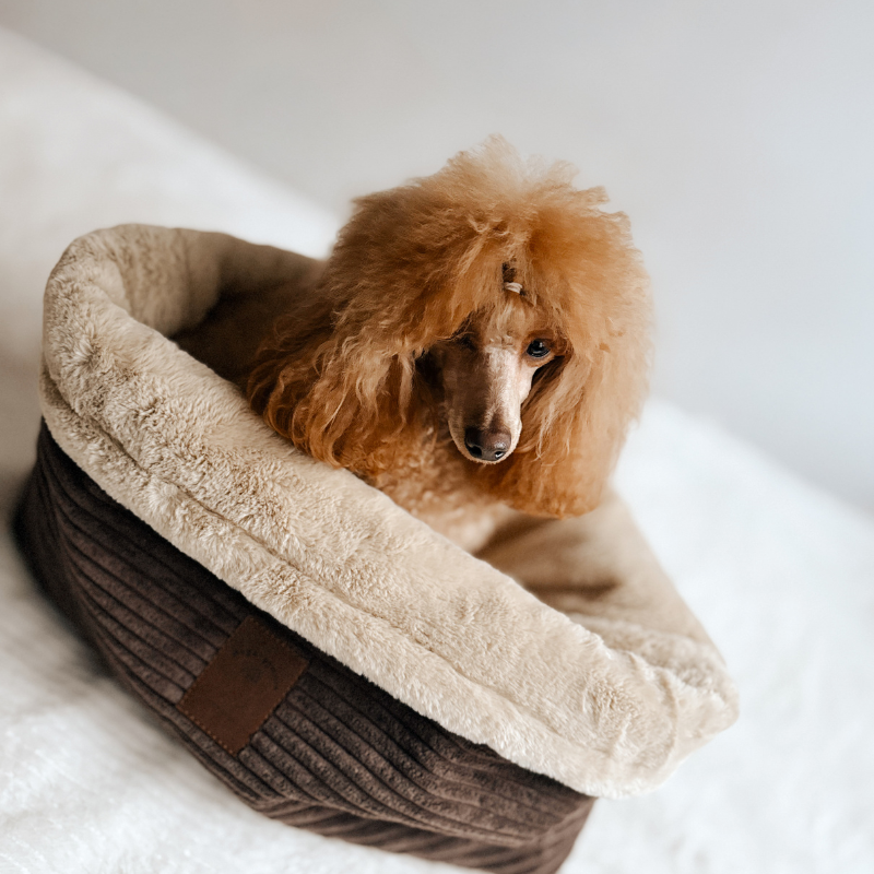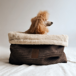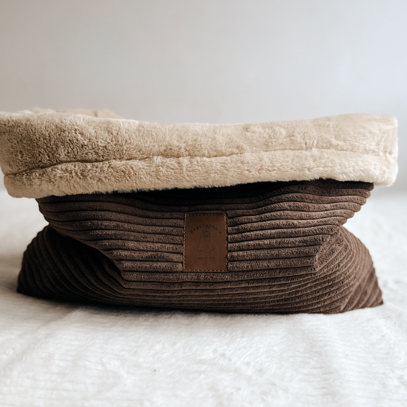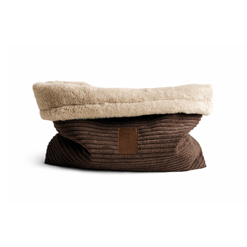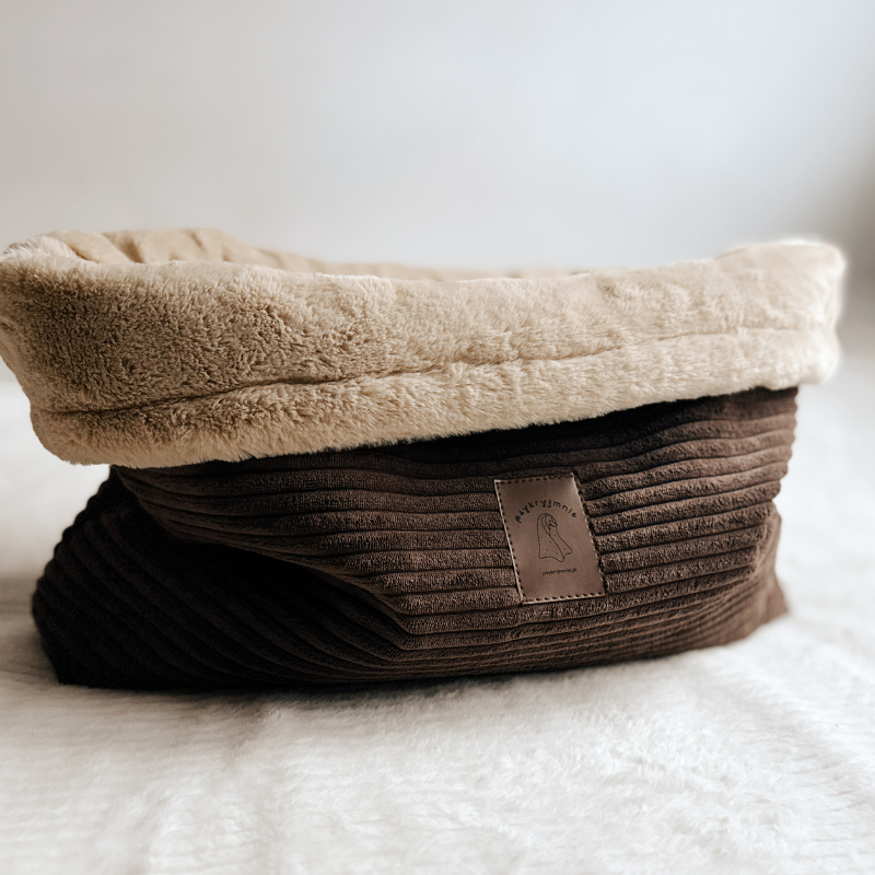 Zewnętrzna warstwa śpiworka wykonana jest ze sztruksu tapicerskiego. Jest to tkanina bardzo trwała, estetyczna i odporna na codzienne użytkowanie. Miękkie futerko wewnątrz to uczucie niesamowitej wygody, którą pokocha Twój pupil.