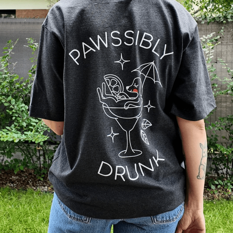 Wyraź swój styl i miłość do psów z odrobiną humoru – koszulka “Pawssibly Drunk” to idealne połączenie wygody i charakteru dla prawdziwych miłośników czworonogów