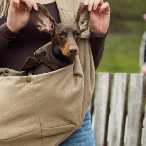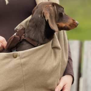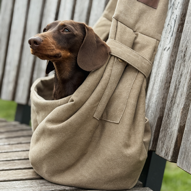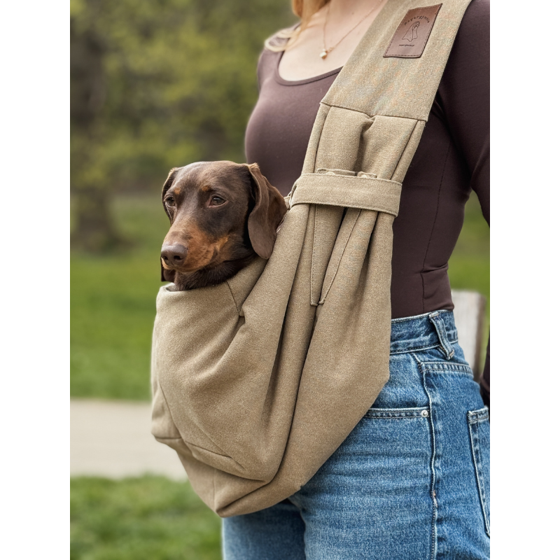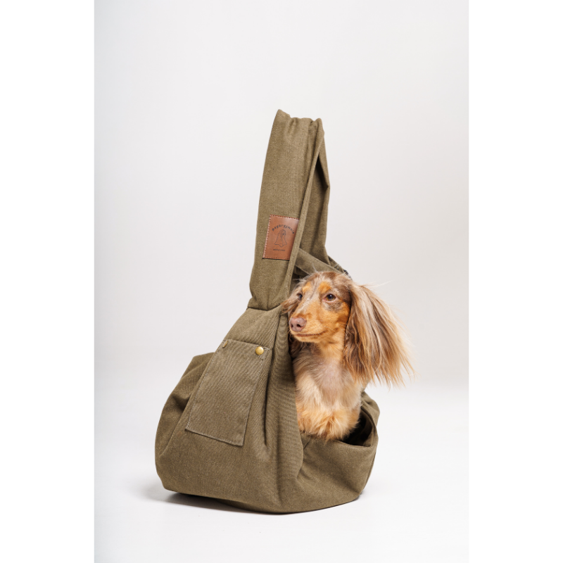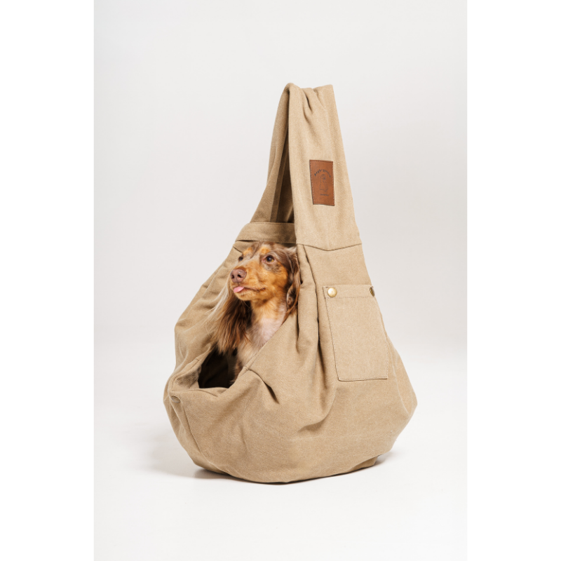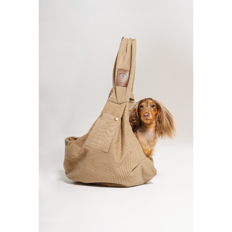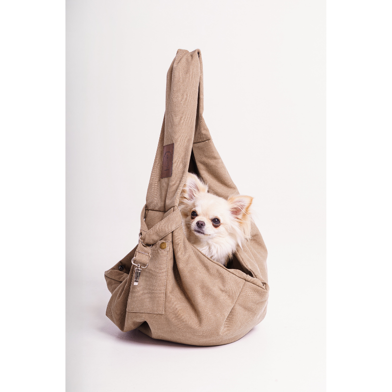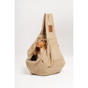 Torba została wykonana z bawełny, co sprawia, że jest idealnym rozwiązaniem podczas cieplejszych dni. Przy torbie znajduję się specjalny pasek z karabińczykiem, który można przypiąć do obroży lub szelek zwiększając bezpieczeństwo psa podczas noszenia. Dodatkowa kieszonka pomieści niezbędne drobiazgi, takie jak woreczki, smakołyki czy klucze.