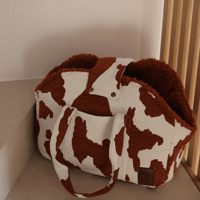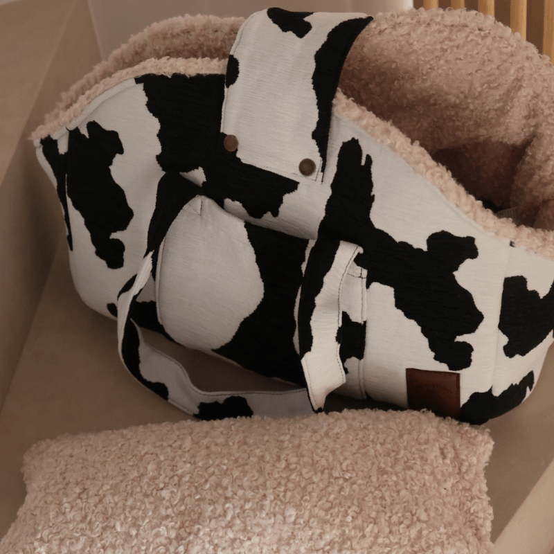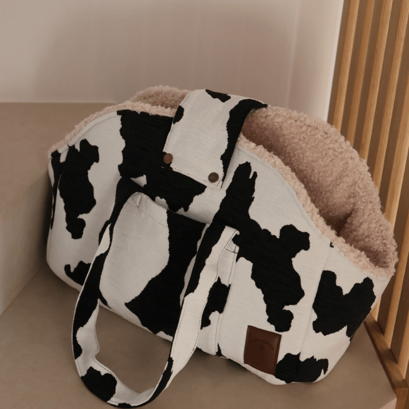 Nasza torba podróżna dla psa w krowi wzór to idealne połączenie nowoczesnego designu i praktycznych rozwiązań. Dostępna w dwóch wersjach kolorystycznych:
