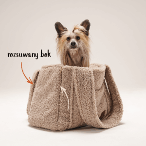 Nasza torba została wykonana w całości z miękkiej tkaniny typu baranek, która zapewnia ciepło i komfort nawet w chłodniejsze dni. To idealne rozwiązanie dla psów, które lubią być blisko opiekuna podczas spacerów, wycieczek czy wypadów do kawiarni.